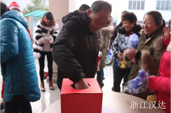 12月24日,為慶祝平安夜和圣誕節(jié),公司舉辦了“安度平安夜,共慶圣誕節(jié)”活動(dòng)。聽說圣誕老人因?yàn)殪F霾摔倒在地,至今無人敢扶,他只好派出了自己的一雙兒女來到浙江漢達(dá),給員工們派發(fā)了蘋果和神秘禮物,并且在現(xiàn)場舉行了熱火朝天的抽獎(jiǎng)儀式,琳瑯滿目的獎(jiǎng)品,心動(dòng)有沒有!