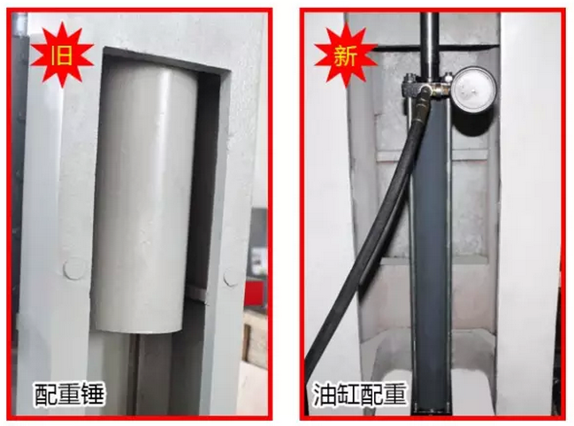 機架的配重由原先的定量配重錘更改為液壓缸配重,配重調整更靈活、使加工更平穩(wěn)。