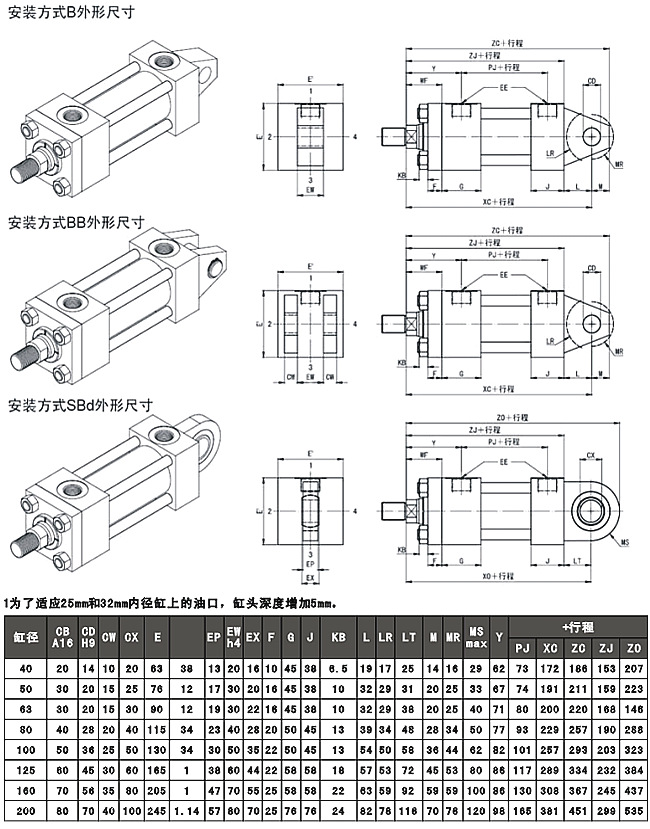 YGD標準液壓缸B\BB\SBd四拉桿液壓缸具體參數(shù)