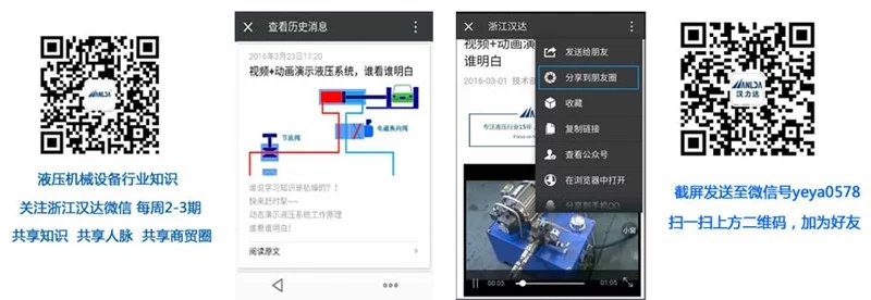 關(guān)注浙江漢達(dá)公眾號(微信號:zjhanda,下圖左邊二維碼)分享此文章微信版到您的朋友圈,并截屏發(fā)給微信號yeya0578(下圖右邊二維碼),即可入微信群《漢達(dá)班液壓系統(tǒng)學(xué)習(xí)分享群二》(《漢達(dá)班液壓系統(tǒng)學(xué)習(xí)分享群一》已滿員)