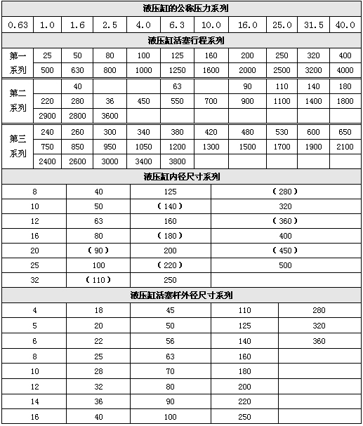 國(guó)家標(biāo)準(zhǔn)GB/T7938-1987規(guī)定了液壓缸公稱(chēng)壓力系列